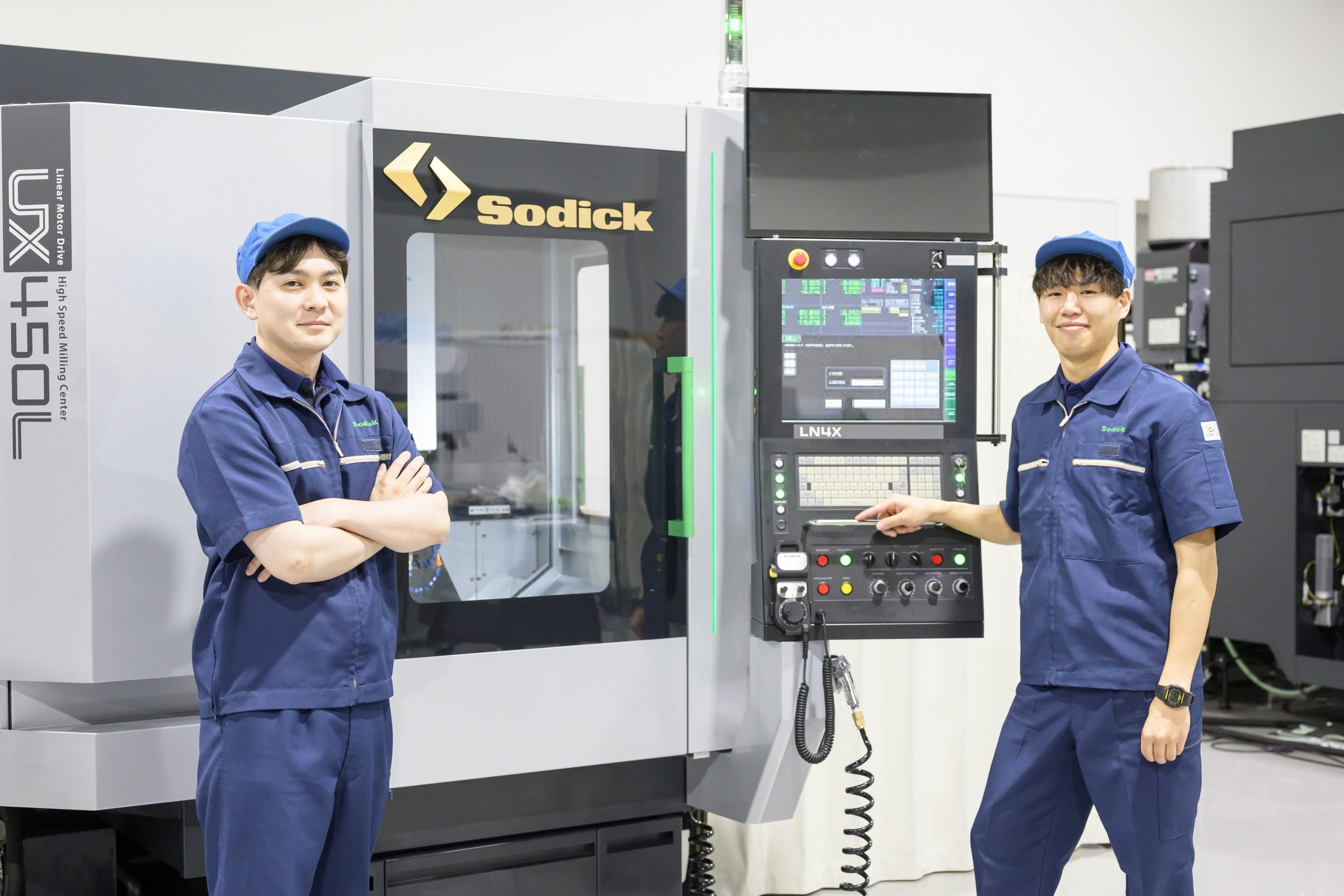 先輩 ● マシニングセンタは金属を削って形をつくる機械です。自動車やスマートフォンのコネクタも製造できますし、さまざまな部品をつくるための「金型」の成形に使われます。中でも当社のマシニングセンタは精密な部品を必要とするお客様をターゲットにしています。自分が担当した機械を納品したときに、実際に使われている様子を見たり、お客様から「こんな風に使っているんだよ」と教えていただけたりすることがあります。「ソディックの機械だからこの精度がだせる」とか「特別なこんな作業に使っている」と聞くと、製造業の根幹の部分で役にたっていることが実感できます。最近は自動化の要望も増えています。
