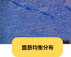 面带的面筋排列状态(放大200倍照片)斜纹压延 一般压延