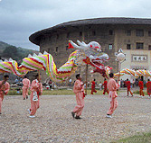 3世紀、異民族の侵入に追われ南下し続けた客家の人々が、安住のために築き上げた要塞のような城壁に囲まれた建築物です。