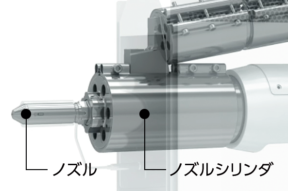 - 新開発「ノズルシリンダR」で成形時の異物(コンタミ)低減、充填性・色替性を向上