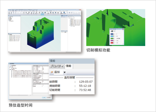 通过切削模拟可以检查切削过度、切削不足的问题。通过基于切削模拟的造型时间计算功能,可以计算出包括造型机动作的时间,以便合理管理工序。