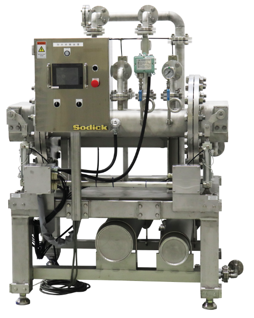 140℃もの高温飽和水蒸気により、食品材料をごく短時間で殺菌できる装置です。