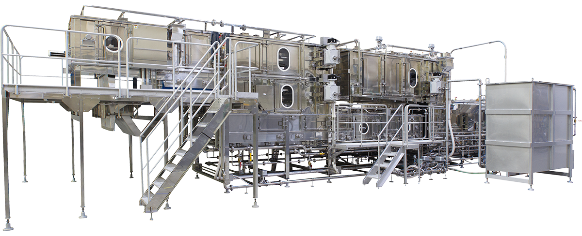 - 茹で上げから水洗冷却まですべてインライン化されていますので大切な麺製品を汚染から守ります。