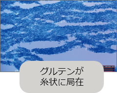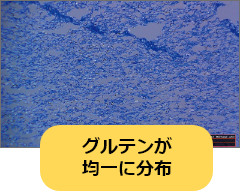麺帯のグルテン配列状態(200倍拡大写真)綾織り圧延 通常圧延