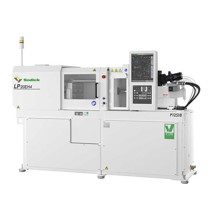 LPシリーズは、独自の油圧サーボ制御技術により、薄肉・複雑形状や高粘度樹脂材料など、成形難易度の高い小物成形に最適化された、ソディック製V-LINE機のフラッグシップモデルです。