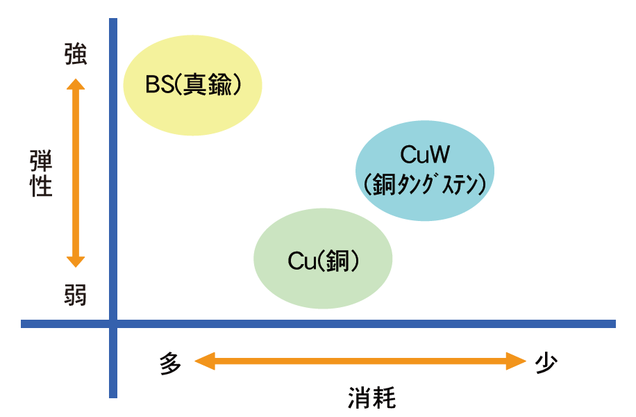 銅よりも弾性が強く、変形を抑えられるため、扱いやすいことが特長です。