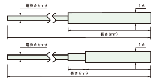 | 電極種類 | 断面図 | 外観 | 特長 |
