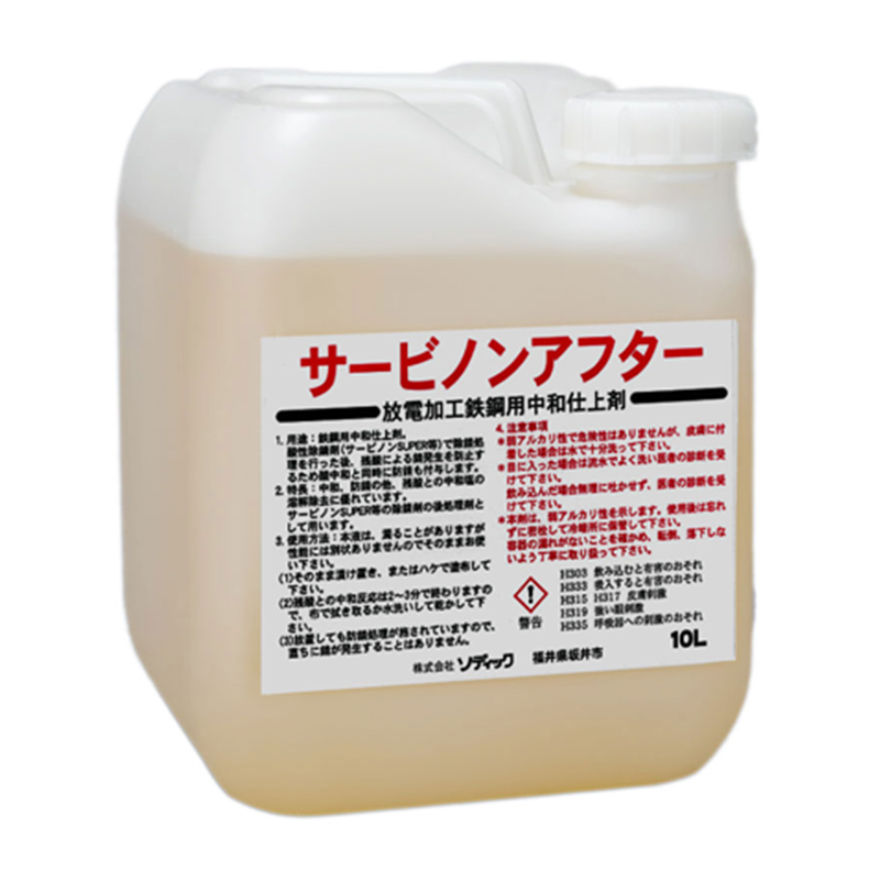 ケミカル製品 HOME製品情報サプライ品ケミカル製品 ソディックのケミカル製品は、脱脂洗浄・防錆・除錆・潤滑といった、それぞれの⽤途に最適化されています。加工の前準備から、加工後のワークの保管まで、幅広くサポートします。 V-クリーンスプレーワークに付着した油を取り除く、脱脂洗浄剤スプレー。脱脂洗浄剤サービナイトスプレー放電加工後のワークに、錆が発生するのを防ぐ、防錆剤スプレー。防錆剤V-Wコートスプレーワイヤ放電加工時、ワークに錆が発生するのを防ぐ、防錆被膜剤スプレー。防錆被膜剤サービノンSUPER放電加工後のワークの表面洗浄や、金属表面にできた錆の除錆剤。除錆剤サービノンアフター酸性除錆剤(『サービノンSUPER』)の使用後、表面の中和や防錆を行う仕上げ剤。弱アルカリ性水溶性中和剤V-WXワイヤ放電加工液(水)に添加し、防錆効果を発揮する水溶性防錆剤。水溶性防錆剤KHグリース6459 / グリースガン放電加⼯機の摺動部に注⼊し、潤滑を促す高性能グリース。グリース FAQ(よくあるご質問と回答)はこちら