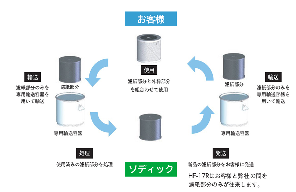 エコフィルタは、お客様とソディックのレンタル同意に基づき、製品の往来を可能としています。