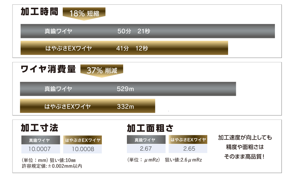 加工条件 はやぶさEXワイヤ:EX条件※開発中(5thカット)/ 真鍮ワイヤ:Brass ACR5th