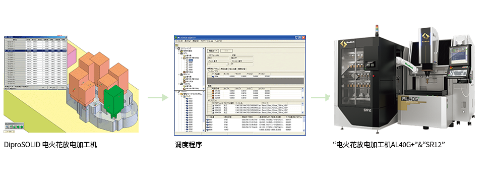 由调度程序“Mr.Sodick”、CAD-CAM 软件“DiproSOLID” 组合而成的自动化系统。由于硬件和软件均由沙迪克自主研发,可以避免工程链出现断层,实现一体化制造。