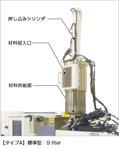 ソディックは、【タイプA】材料押し込み標準型と【タイプB】脱気機能付き型をラインアップしています。